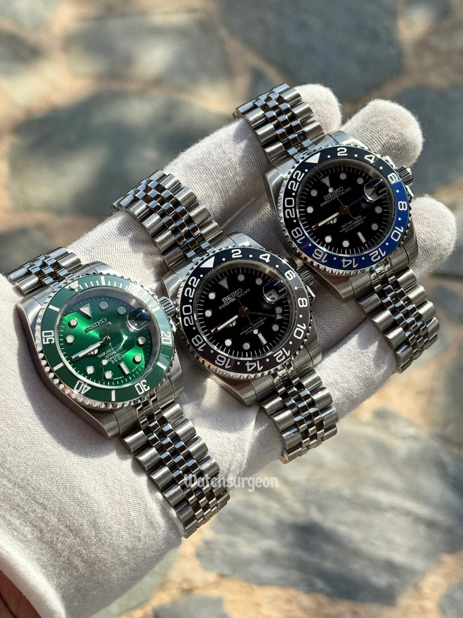 A Seiko mod is a personalized Seiko watch, expertly customized by enthusiasts or professionals to reflect unique styles and preferences. These modifications can range from upgrading the dial, hands, and bracelet to enhancing internal components such as the movement. Additionally, custom parts and accessories can be added to elevate both the aesthetics and performance of the watch, resulting in a truly one-of-a-kind timepiece tailored to your taste.